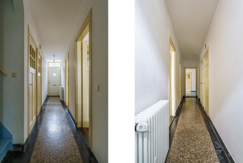De woning heeft zowel moderne als authentieke elementen. Denk aan die mooie en suite deuren, originele binnendeuren en die prachtige terrazzovloer bij de ingang. Is gedeeltelijk gerenoveerd en uitgebouwd. Ook zijn er kunststof kozijnen geplaatst met dubbel HR++glas.