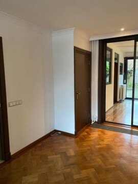 De royale doorzon woonkamer is voorzien van een houten vloeren. De woonkamer heeft veel lichtinval en via de schuifpui is vanuit de woonkamer de achtertuin bereikbaar.
