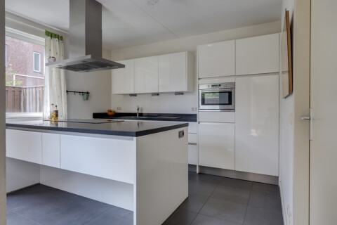 Riant en modern afgewerkt geschakeld herenhuis met carport, aanpandige berging, drie ruime slaapkamers en een achtertuin op het westen.