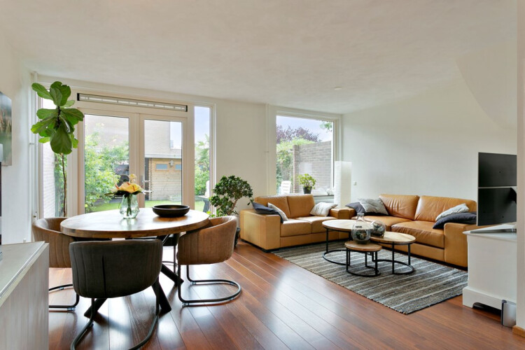 De gezellige en tuingerichte woonkamer heeft een oppervlakte van circa 26 m² en is voorzien van een nette laminaatvloer welke doorloopt in de keuken en de hal. De grote raampartijen aan de achterzijde zorgt voor de benodigde lichtinval en een optimaal tuincontact. Openslaande deuren bieden toegang tot de achtertuin.